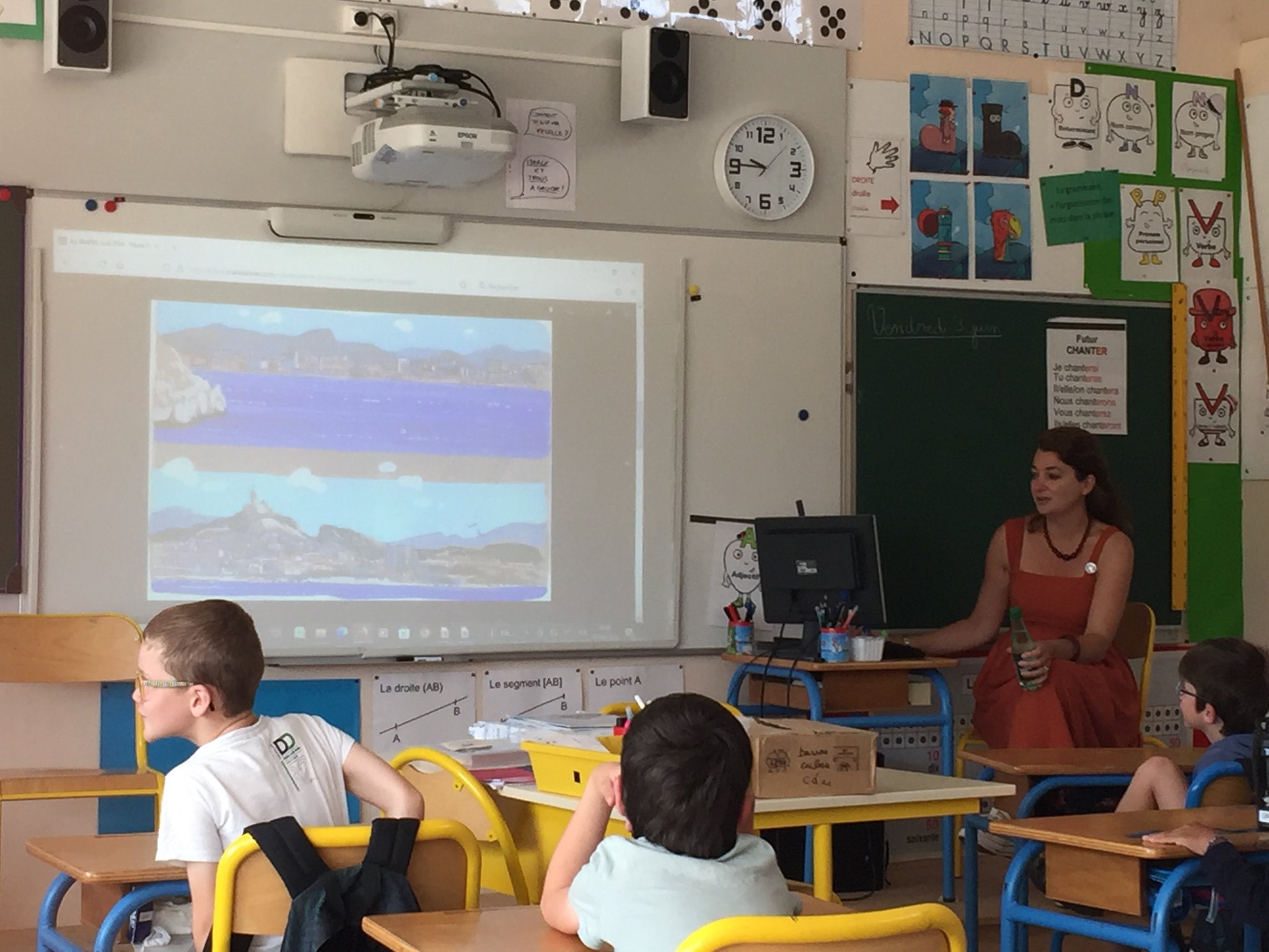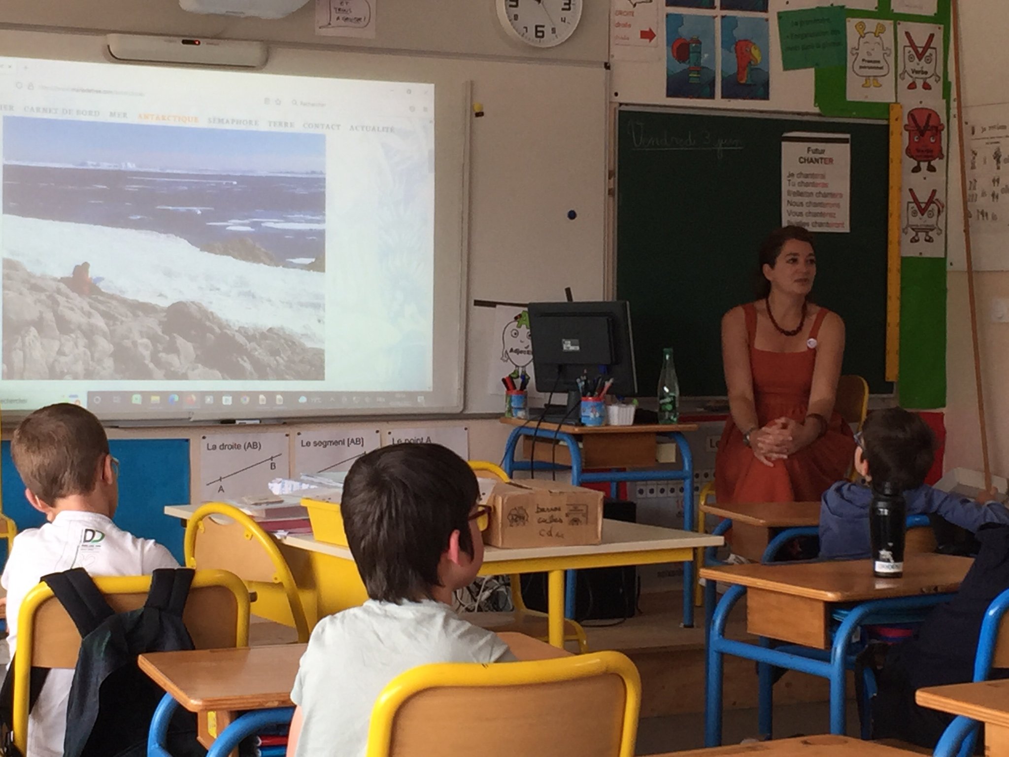 Les rencontres avec les élèves ont été riches et passionnantes. Marie a pu montrer grâce aux tableaux numériques installés dans chaque classe le quotidien des marins.