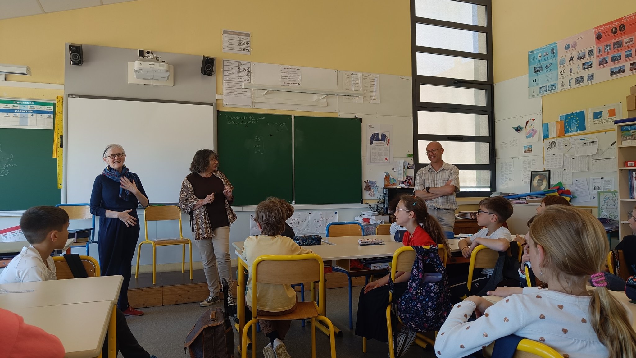 Claudine Guilhot est intervenue à l’école des Huches, vendredi 12 avril en classe de CM, dans le cadre des animations avec la bibliothèque de St Etienne -Lardeyrol et le réseau des bibliothèques