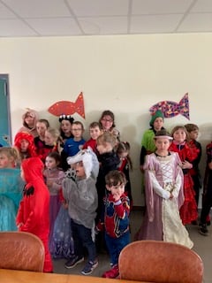Le 15 février 2024 les enfants de l'école déguisés sont venus à la bibliothèque, les enseignantes ont lu des contes autour du carnaval puis le groupe a rejoint le club des anciens. Les enfants ont récité des poésies et ont chanté puis une dégustation de crêpes a réuni ces 2 générations.