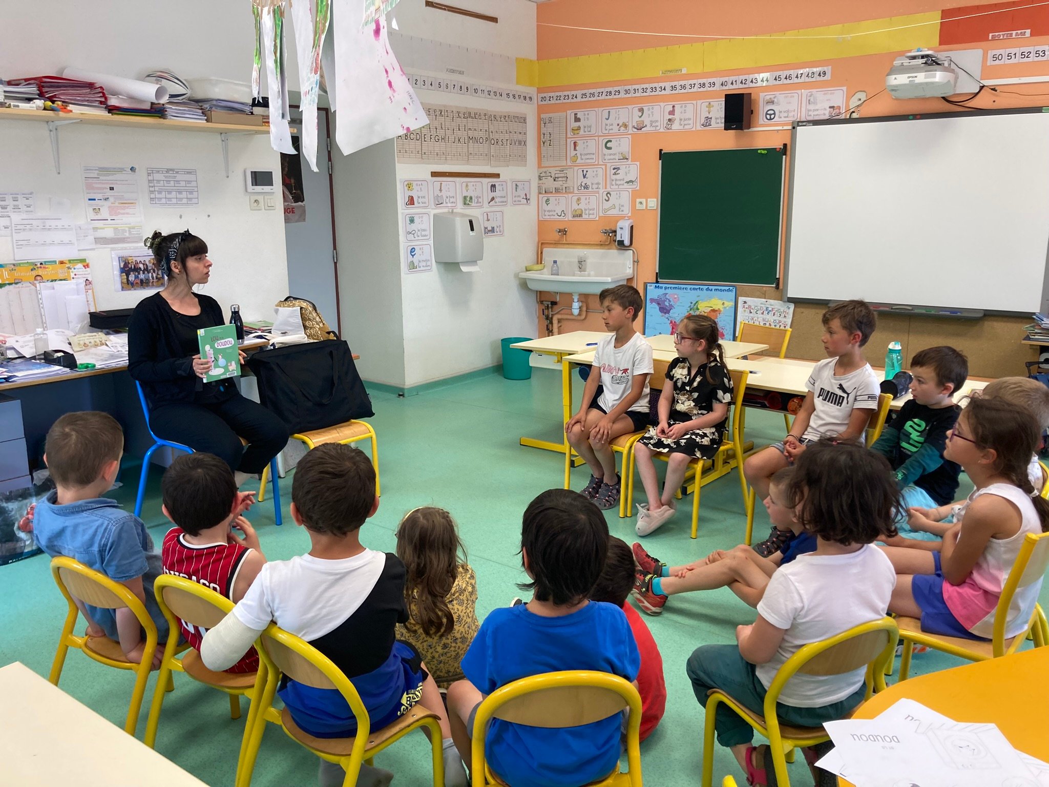 Dans chaque classe Audrey a pu échanger avec les élèves, montrer quelques dessins originaux, expliquer de façon simple comment naît un livre. Un atelier a permis à chacun de participer à une grande fresque collective ou à la création d'une belle image en suivant des consignes précises. Le résultat en a surpris plus d'un.