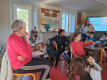 Après une petite pause récréation bien méritée Mme Fournier vient témoigner de son chemin de l’école quand elle était enfant